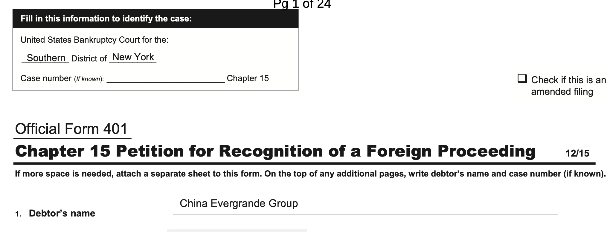8月18日消息,据蓝鲸财经获取的3份法庭文件,中国恒大(3333.HK)境外债务的3家债务主体恒大集团、景程、天基均根据美国破产法第15章申请破产保护。