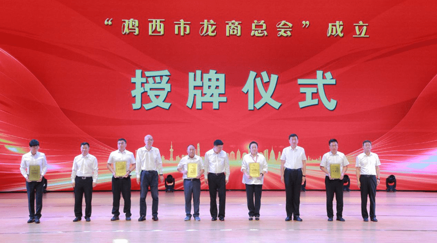 在随后的授牌仪式上,各级政府领导及企业家代表共同上台按下“鸡西市龙商总会”启动键,鸡西市委秘书长王景章宣布鸡西市龙商总会成立,鸡西市委书记鲁长友等领导向新当选龙商总会会长方同华授牌。