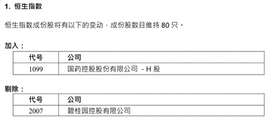 恒生指数公司:将国药控股纳入恒生指数 剔除碧桂园