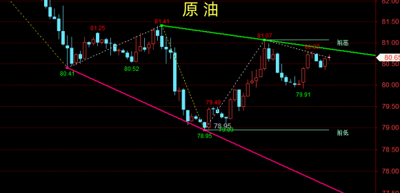 策略二:下方79.6附近多单进场,止损0.6个点,目标看向82.8。