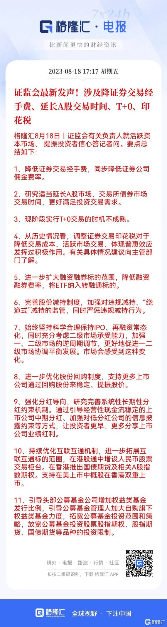 当然,最为劲爆的是今日证监会就“活跃资本市场,提振投资者”信心答记者问,释放了很多重磅级支持股市的政策: