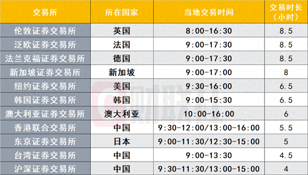 一图看懂全球主要证券交易市场交易时长 A股目前交易时间最短