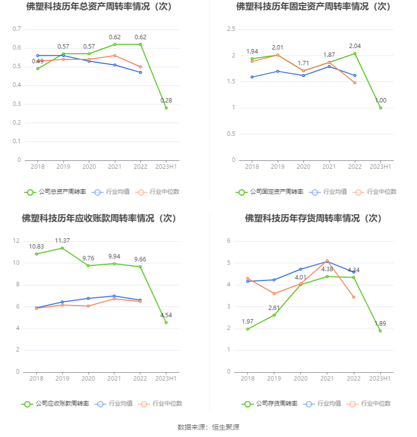 营运能力方面,2023年上半年,公司总资产周转率为0.28次,上年同期为0.31次(2022年上半年行业平均值为0.24次,公司位居同行业5/17);固定资产周转率为1.00次,上年同期为0.98次(2022年上半年行业平均值为0.86次,公司位居同行业7/17);公司应收账款周转率、存货周转率分别为4.54次、1.89次。