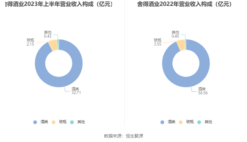 分产品来看,2023年上半年公司主营业务中,酒类收入32.71亿元,同比增长15.95%,占营业收入的92.69%;玻瓶收入2.15亿元,同比增长17.58%,占营业收入的6.10%。