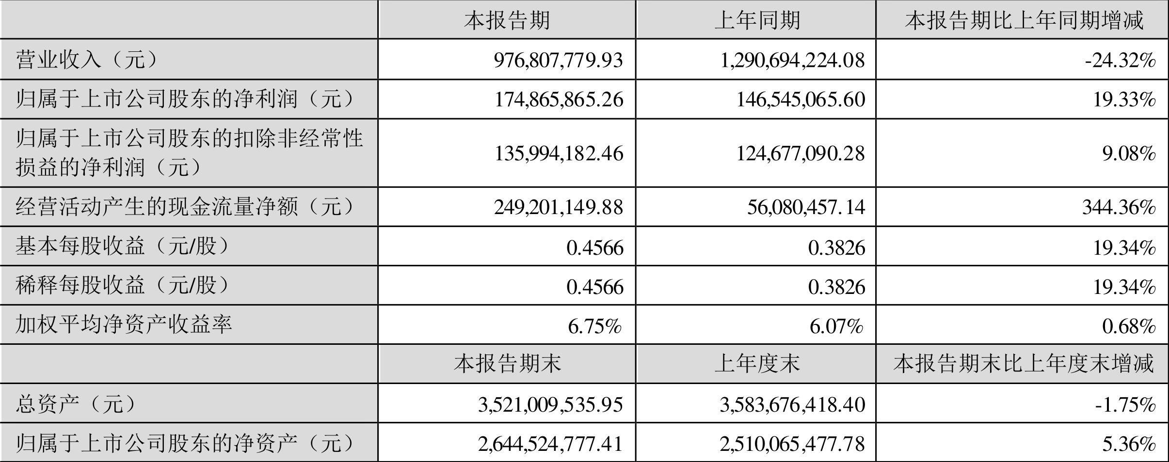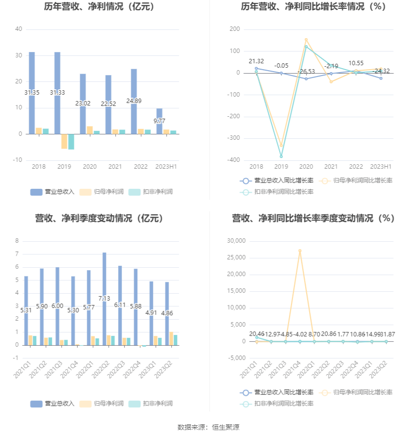 根据半年报,公司第二季度实现营业总收入4.86亿元,同比下降31.87%,环比下降1.01%;归母净利润1.03亿元,同比增长34.38%,环比增长44.87%;扣非净利润7938.5万元,同比增长10.48%,环比增长40.23%。