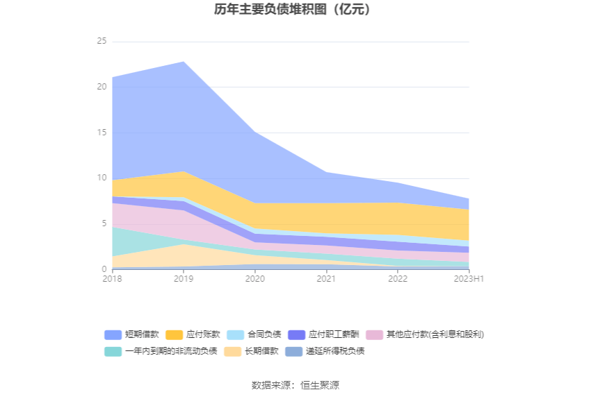 负债重大变化方面,截至2023年二季度末,公司短期借款较上年末减少44.86%,占公司总资产比重下降2.67个百分点;一年内到期的非流动负债较上年末减少41.68%,占公司总资产比重下降0.91个百分点;应付账款较上年末减少3.91%,占公司总资产比重下降0.22个百分点;合同负债较上年末减少12.29%,占公司总资产比重下降0.23个百分点。