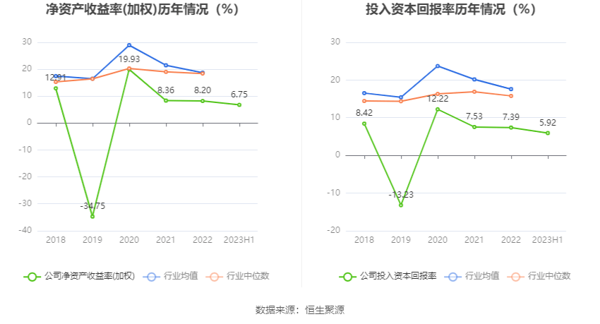 数据显示,2023年上半年公司加权平均净资产收益率为6.75%,较上年同期增长0.68个百分点;公司2023年上半年投入资本回报率为5.92%,较上年同期增长0.81个百分点。
