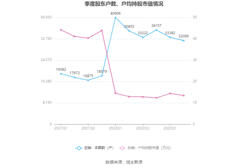 筹码集中度方面,截至2023年二季度末,公司股东总户数为3.21万户,较一季度末下降了1283户,降幅3.84%;户均持股市值由一季度末的14.41万元下降至13.49万元,降幅为6.38%。