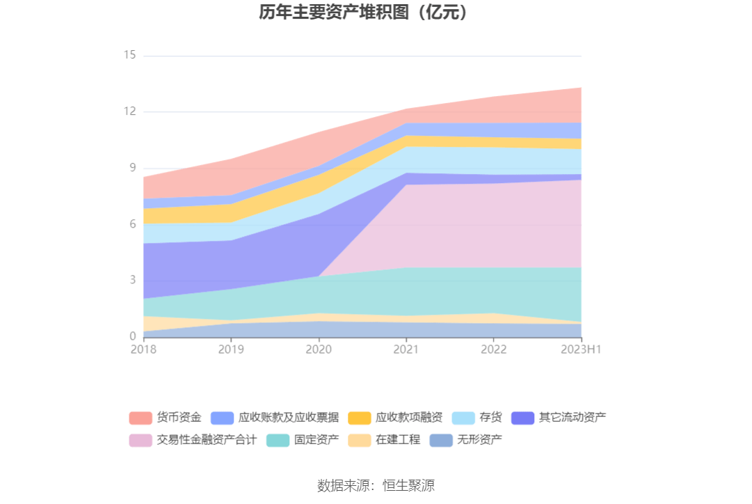 资产重大变化方面,截至2023年二季度末,公司在建工程较上年末减少79.04%,占公司总资产比重下降3.17个百分点;货币资金余额较上年末增加33.33%,占公司总资产比重上升2.90个百分点;固定资产较上年末增加18.74%,占公司总资产比重上升2.53个百分点;存货余额较上年末减少8.13%,占公司总资产比重下降1.26个百分点。