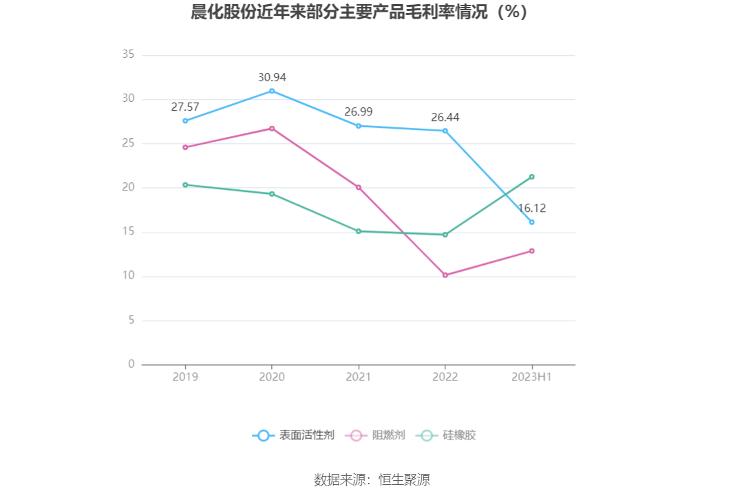 分产品看,表面活性剂、阻燃剂、硅橡胶2023年毛利率分别为16.12%、12.86%、21.24%。