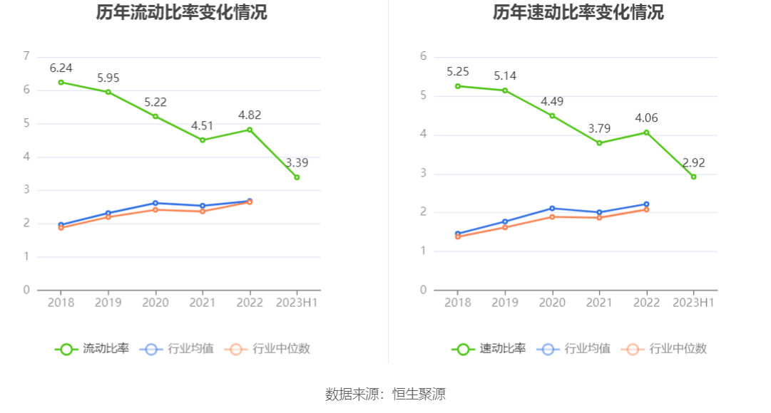 2023年上半年,公司流动比率为3.39,速动比率为2.92。