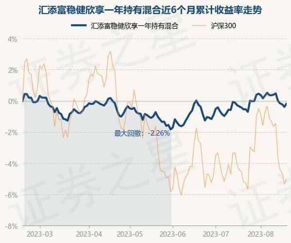 8月18日,汇添富稳健欣享一年持有混合最新单位净值为0.8968元,累计净值为0.8968元,较前一交易日下跌0.32%。历史数据显示该基金近1个月下跌0.16%,近3个月上涨0.58%,近6个月下跌0.54%,近1年下跌3.45%。该基金近6个月的累计收益率走势如下图: