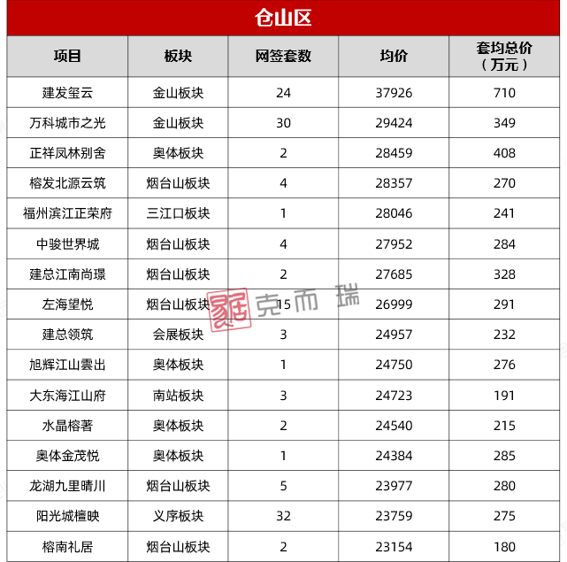 福州五区各住宅楼盘成交价(不含别墅)