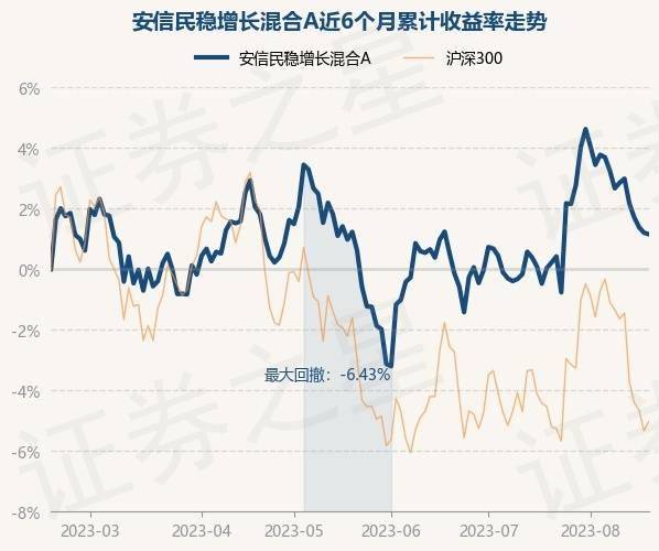 8月18日,安信民稳增长混合A最新单位净值为1.3201元,累计净值为1.3711元,较前一交易日下跌0.29%。历史数据显示该基金近1个月上涨1.31%,近3个月下跌0.57%,近6个月上涨0.8%,近1年上涨3.44%。该基金近6个月的累计收益率走势如下图: