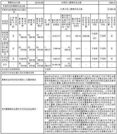 以前年度累计已使用募集资金19,908.91万元,收到银行存款利息扣除银行手续费等的净额532.92万元。2023年上半年度实际使用募集资金16,096.47万元(其中募集资金投资项目1,096.47万元,闲置募集资金暂时补充流动资金15,000.00万元),收到银行存款利息扣除银行手续费等的净额8.29万元。