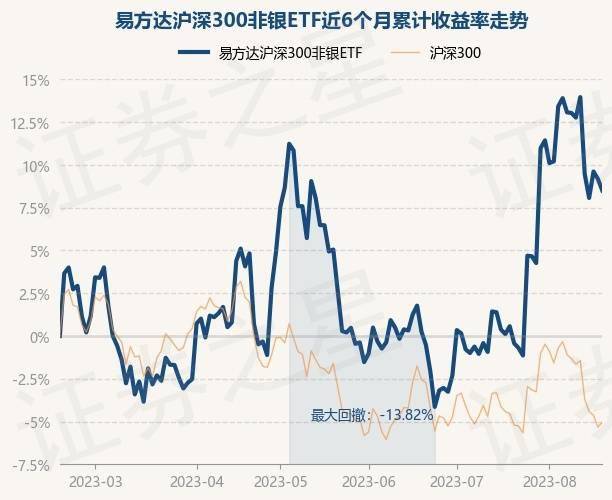8月18日,易方达沪深300非银ETF最新单位净值为0.6844元,累计净值为2.0532元,较前一交易日下跌0.57%。历史数据显示该基金近1个月上涨7.75%,近3个月上涨1.3%,近6个月上涨7.83%,近1年上涨14.35%。该基金近6个月的累计收益率走势如下图: