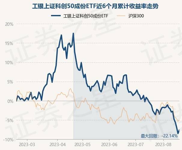 8月18日,工银上证科创50成份ETF最新单位净值为0.933元,累计净值为0.6502元,较前一交易日下跌0.67%。历史数据显示该基金近1个月下跌7.59%,近3个月下跌12.3%,近6个月下跌8.21%,近1年下跌21.36%。该基金近6个月的累计收益率走势如下图: