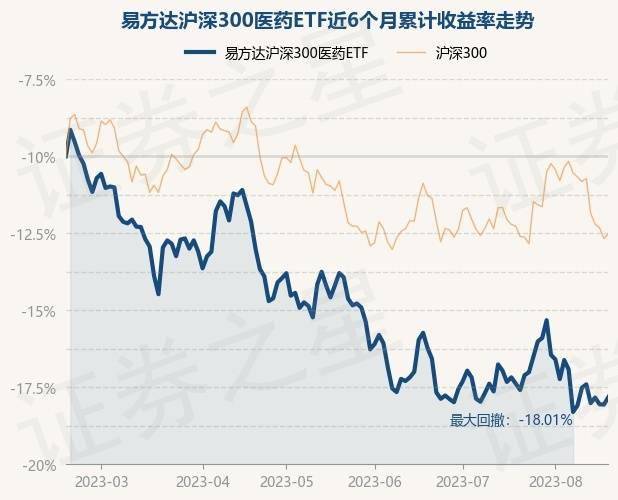 8月18日,易方达沪深300医药ETF最新单位净值为0.4148元,累计净值为1.6592元,较前一交易日下跌1.85%。历史数据显示该基金近1个月下跌3.33%,近3个月下跌8.82%,近6个月下跌17.16%,近1年下跌14.42%。该基金近6个月的累计收益率走势如下图: