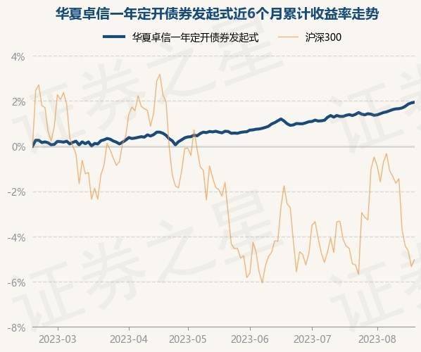 8月18日,华夏卓信一年定开债券发起式最新单位净值为1.0354元,累计净值为1.0354元,较前一交易日上涨0.03%。历史数据显示该基金近1个月上涨0.58%,近3个月上涨1.31%,近6个月上涨1.93%,近1年上涨1.48%。该基金近6个月的累计收益率走势如下图: