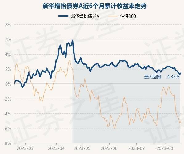 8月18日,新华增怡债券A最新单位净值为1.3995元,累计净值为1.6265元,较前一交易日下跌0.13%。历史数据显示该基金近1个月下跌0.86%,近3个月下跌1.26%,近6个月上涨1.34%,近1年下跌3.57%。该基金近6个月的累计收益率走势如下图: