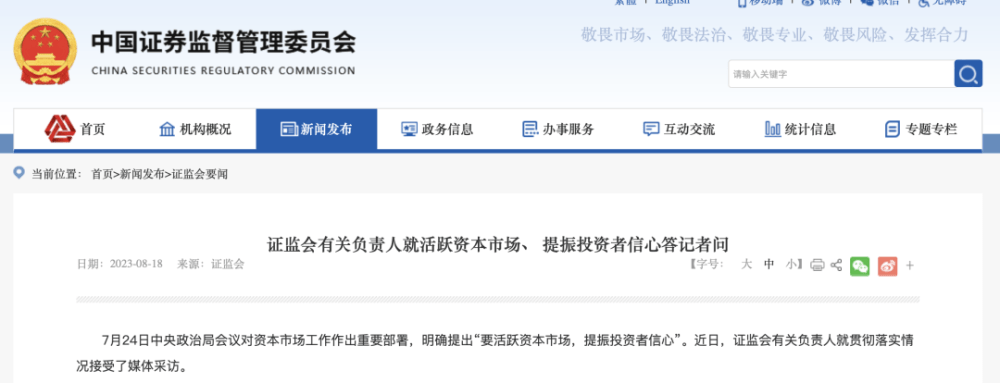 证监会有关负责人表示,将从六方面来活跃资本市场,提振投资者信心。