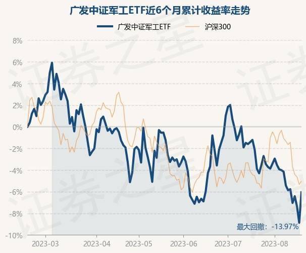 8月18日,广发中证军工ETF最新单位净值为1.0625元,累计净值为1.0625元,较前一交易日下跌0.95%。历史数据显示该基金近1个月下跌5.78%,近3个月下跌6.4%,近6个月下跌6.9%,近1年下跌16.53%。该基金近6个月的累计收益率走势如下图: