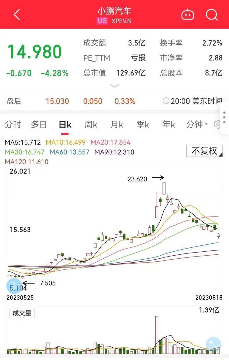 8月18日,小鹏汽车(NYSE:XPEV;09868.HK)发布2023年第二季度财报,亏损超出市场预期,扩大至28亿元。受此影响,18日小鹏汽车港股收盘大跌超6%;美股盘中一度跌超8%,收盘跌超4%。