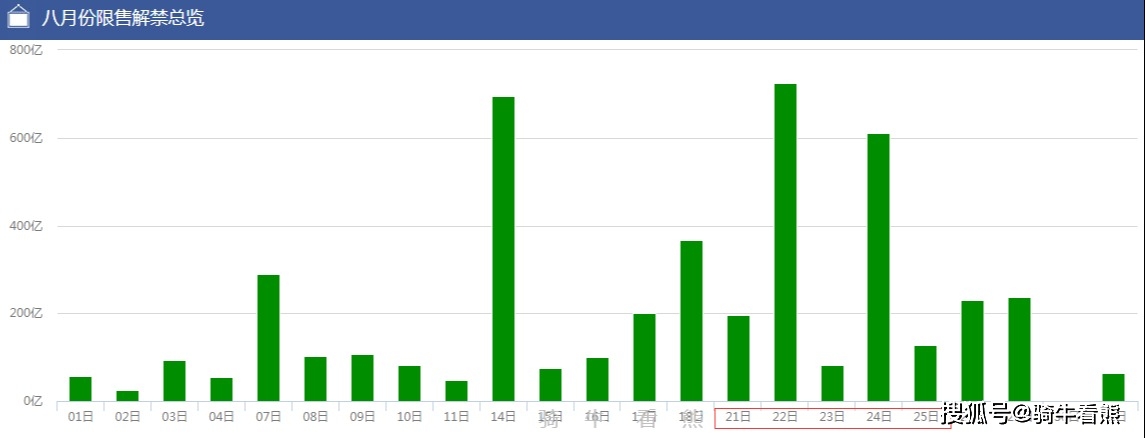 8月22日(周二)、8月24日(周四)是下周解禁的高峰期,并且有部分个股解禁比例已经超过了70%,特别是8月23日(周三)的大宏立;8月24日(周四)的 南大环境、蒙泰高新、维康药业、天普股份。一定要注意这些个股不要“踩雷”。