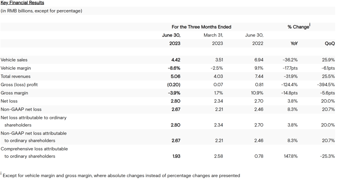 季报显示,二季度总营收为50.6亿元,同比降31.9%;归属公司普通股股东净亏损28亿元,上年同期净亏损27亿元;总交付量23205辆,环比增27.3%;预计三季度交付量介于3.9万-4.1万辆,同比增38.7%-31.9%,预计三季度总营收介于85亿-90亿元,同比增24.6%-31.9%。