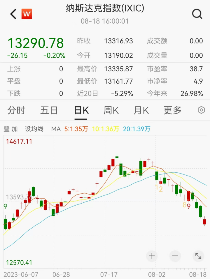 美东时间8月18日,美国三大股指收盘涨跌不一。截至收盘,道指涨0.07%报34500.66点,标普500指数跌0.01%报4369.71点,纳指跌0.2%报13290.78点。