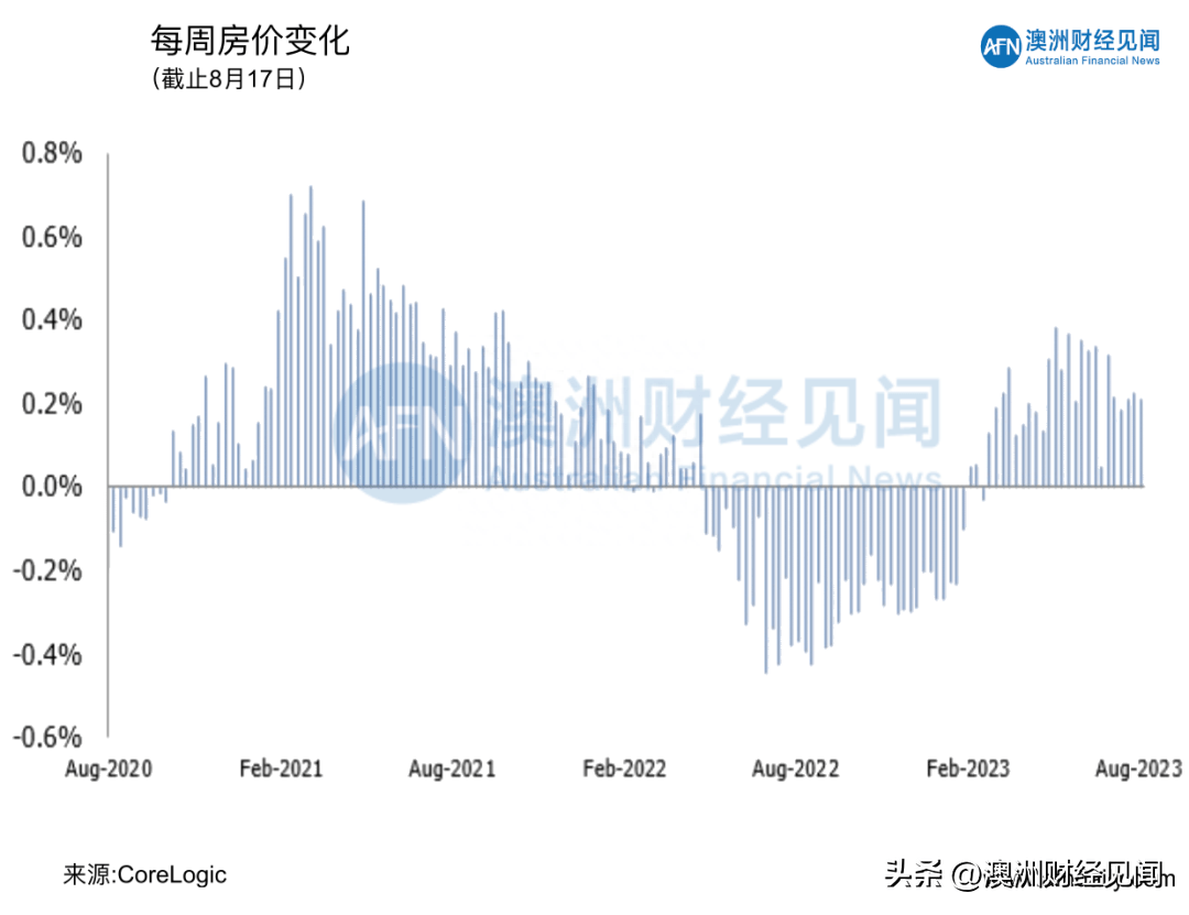 CoreLogic 的每日房价指数显示,在截至 8 月 17 日的一周内上涨了 0.21%,澳洲首府城市房价连续 24 周上涨。