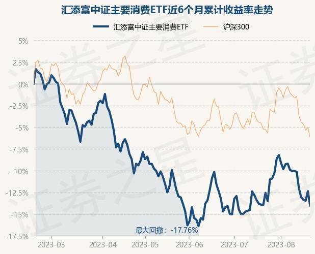 8月18日,汇添富中证主要消费ETF最新单位净值为0.9351元,累计净值为3.7404元,较前一交易日下跌1.88%。历史数据显示该基金近1个月下跌0.22%,近3个月下跌1.69%,近6个月下跌13.96%,近1年下跌11.21%。该基金近6个月的累计收益率走势如下图: