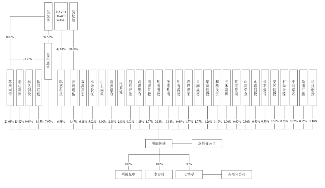 兜兜转转,明皜传感也来到了IPO大门前。根据招股书,截至IPO前夕,苏州固锝是明皜传感的第一大股东,持股比例为21.63%,吴念博、吴炆皜、DAVIDDA-WEI WANG为明皜传感的实控人,三人合计控制明皜传感40.65%股份对应表决权。这对苏州父子即将迎来人生第二个IPO。