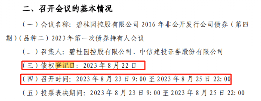 根据该债券持有人会议通知附件,“16碧园05”本金最多展期三年,期间保持票面利率不变,利随本清。碧桂园将于8月23日至25日召开该只债券债权持有人会议,并将对债权登记日前登记在册的每个账户先行兑付10万元本金加利息。