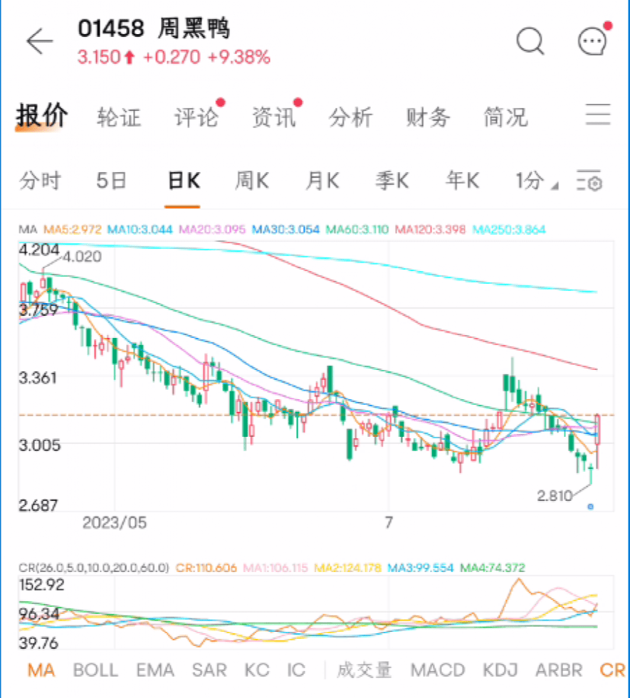 尽管市况探底,但仍有消费和医药的绩优股托底,股价逆市大涨。周黑鸭中期业绩公告引发股价底部反弹。今年上半年,周黑鸭实现营收人民币14.15亿元,同比增长19.79%;净利润人民币1.02亿元,同比增长453.64%。
