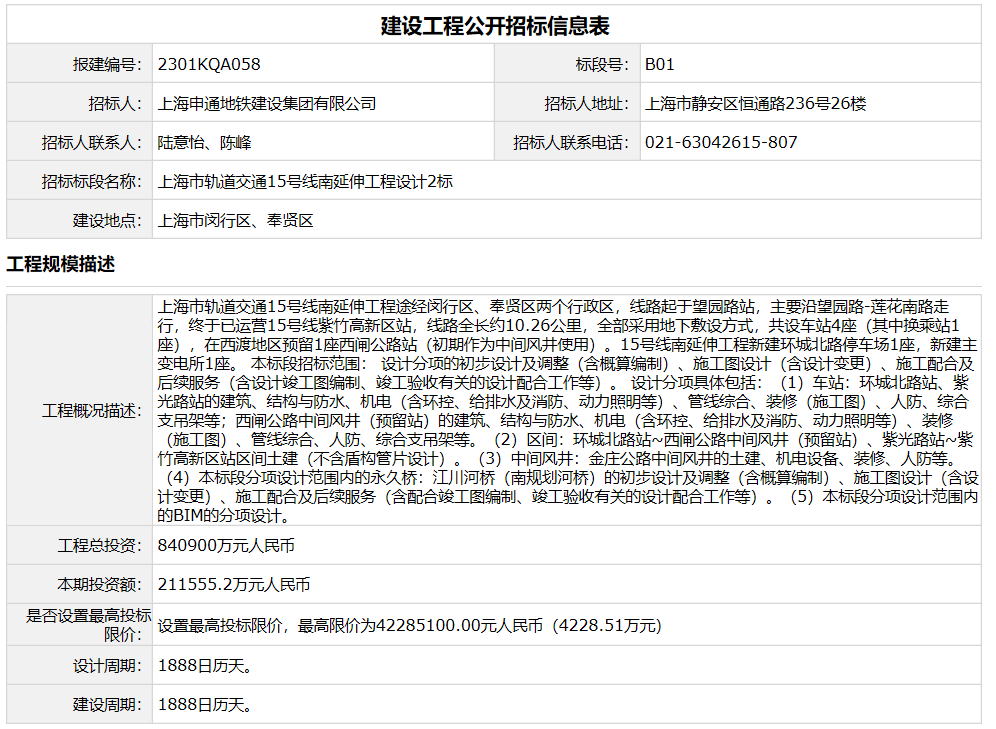 根据官方最新发布的招标公告,15号线南延伸工程于8月17日开启工程设计招标,最新细节披露: