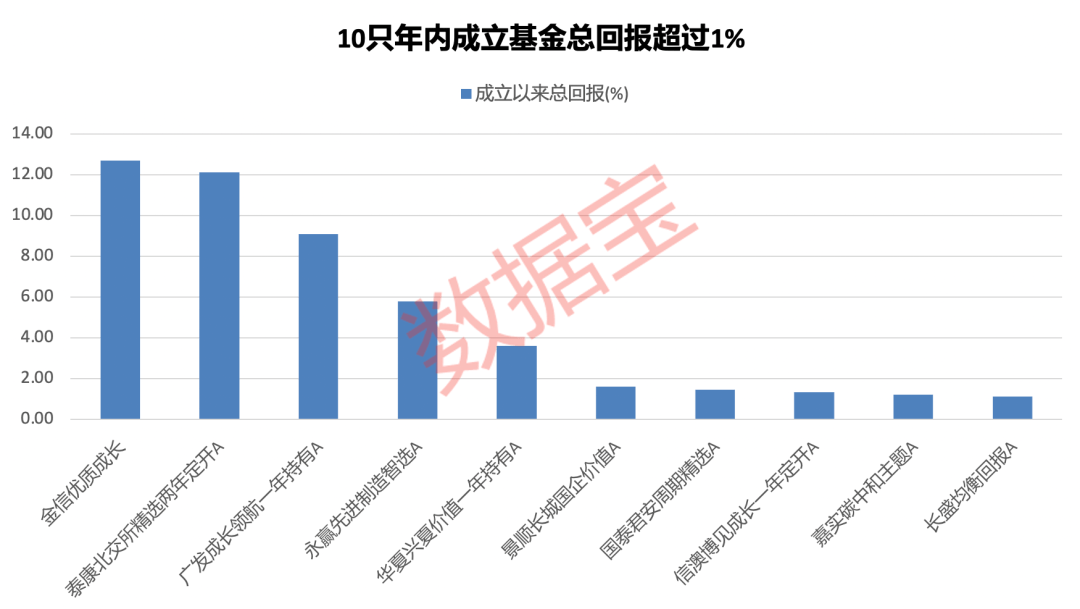 证券时报·数据宝统计,年内成立的主动权益型(普通股票型、偏股混合型、平衡混合型、灵活配置型)基金中(只计A类),仅有10只基金成立以来的回报超过1%,其中金信优质成长、泰康北交所精选两年定开A成立以来的回报居前;41只基金成立以来的回报低于-10%。