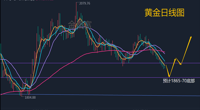 黄金4小时周期上,阴跌不止,每次的反弹都是受到布林中轨的压制继续破位下行!而下方的目标就是此前的黄金大涨的跳空缺口1870-65附近,缺口必补!空,必须是空,本周黄金收线在1893下方, 那么后市的利空将会把黄金推向1870-1865,同时周尾并未走惯性反弹修复,日图连续收阴,K线组合呈极弱空头排列;受美指持续强势打压,预期金价后市将继续向下运行,预计下周新低在周图布林下轨1865-1870附近出现底部后反转;综合来看,今日黄金短线操作思路上金晟富建议反弹做空为主,回调做多为辅,上方短期重点关注1896-1900一线阻力,下方短期重点关注1865-1870一线支撑,各位朋友一定要跟上节奏。要控制好仓位及止损问题、严格设止损,切勿抗单操作。近期市场动荡幅度较大,机会与风险并存,控制风险再博收益。