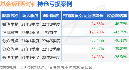 张萍管理的银华心享一年持有期混合基金在21年2季度买入智飞生物,在持有1年又0个季度后在22年2季度卖出。持有期间的估算收益率为-46.72%,持有期间智飞生物在2021年到2022年的年报营业总收入增幅达24.83%。