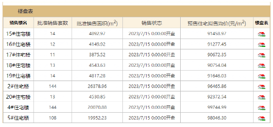 从披露的楼盘信息来看,御翠园的预售范围包括9栋住宅,准许销售面积为93212.24平方米,最高拟售均价为99744.99元/平方米、最低拟售均价为90672.35元/平方米。