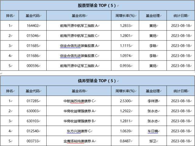 上周(8.14-8.18)绩优基金一览