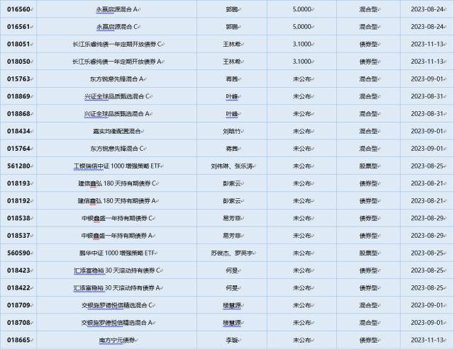 上周(8.14-8.18)新发基金一览(不包含传统封闭式基金)