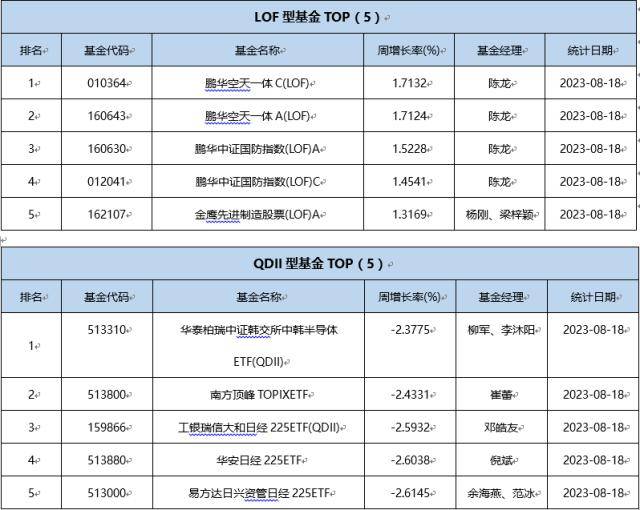 上周(8.14-8.18)基金行情