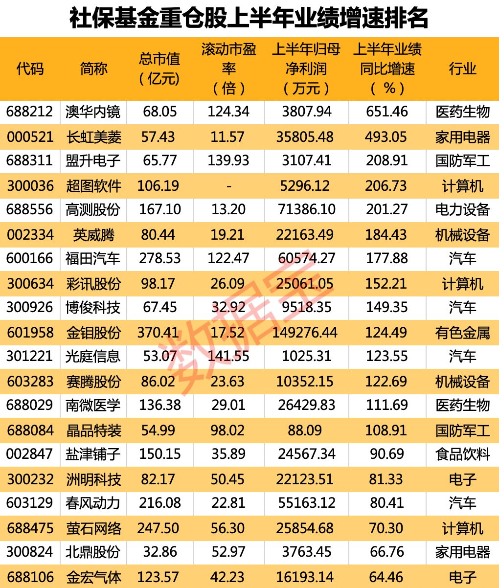 随着上市公司的半年报披露进入高峰期,社保基金的持股情况浮出水面。