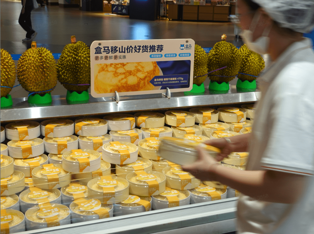 据了解,盒马“移山价”自7月31日推出,率先在上海、北京上线,覆盖包括水果、肉禽蛋奶、水产、乳品烘焙、酒水饮料等多个品类。今日,盒马“移山价”范围扩展至上海、北京、杭州、广州、深圳、佛山、南京、成都、重庆、南昌、长沙、武汉、苏州、南通、无锡等15城,不同城市的“移山价”产品将呈现一定的区域特色。其中,榴莲千层蛋糕成为多地的“顶流”产品——在“移山价”带动下,市场价格一路从128元降至百元以下。除了盒马鲜生门店,盒马X会员店也同步推出活动:8/21-8/23 期间到消费单笔实付金额满499元赠送榴莲千层蛋糕赠品优惠券。