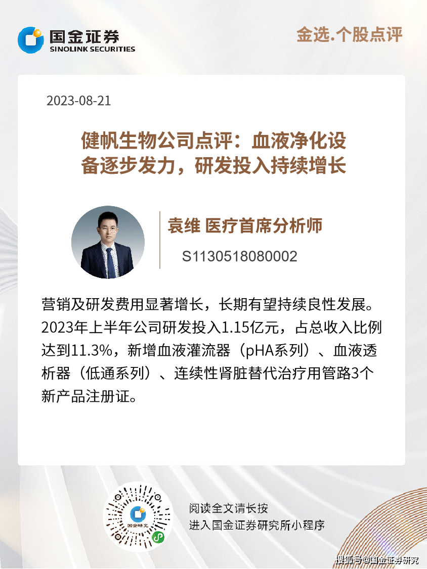 灌流器应用领域持续拓展,国际业务推广力度不断加强。公司目前在肝病、重症和急诊、免疫吸附领域的产品已分别覆盖超过2000、1600、400家医院,同时尿毒症领域新产品KHA系列上半年收入同比增长达到58%,应用拓展和新产品推广顺利。国际业务方面,目前公司已经累计在87个国家实现销售,产品被13个国家纳入医保目录,全面出海战略启动后未来国际业务有望实现加速。