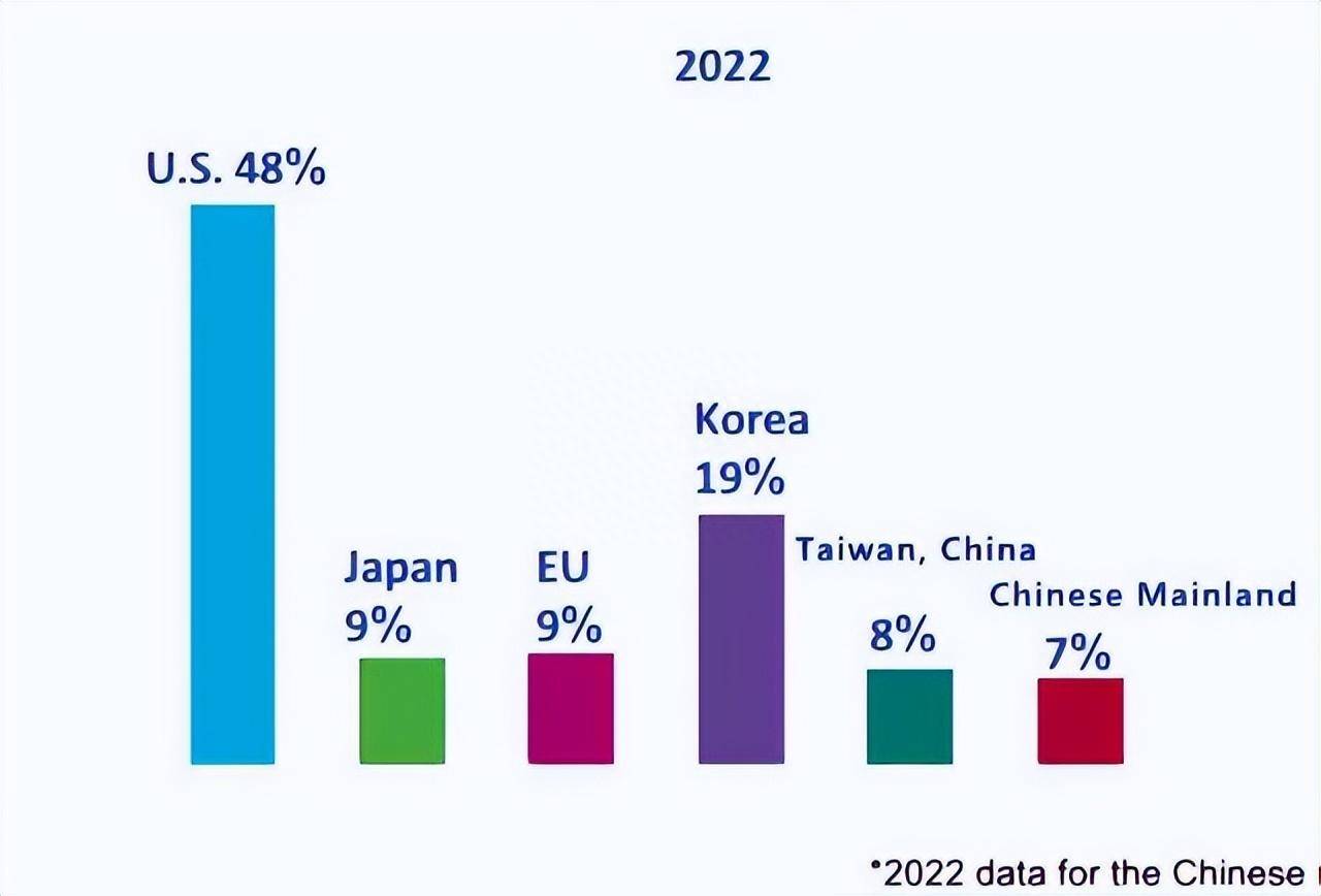按照美国SIA(半导体协会)的数据,2022年美国拿下了全球48%的芯片市场,排名全球第一,然后这些芯片中,约有40%左右卖往中国。
