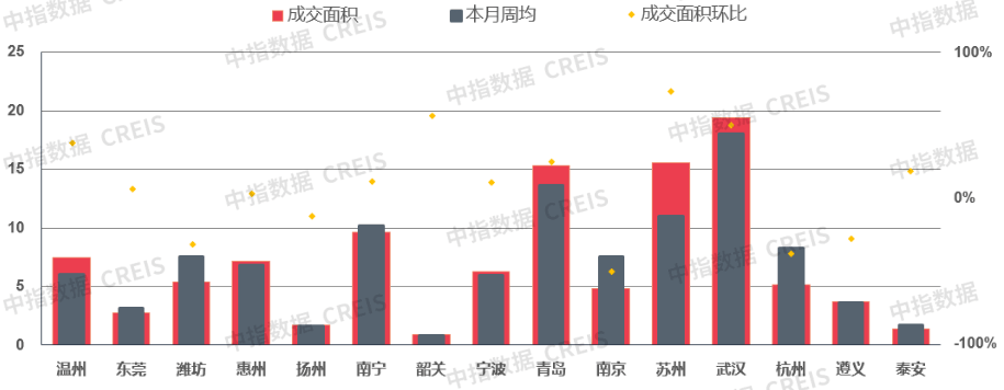 图:二三线重点城市成交面积环比涨跌幅