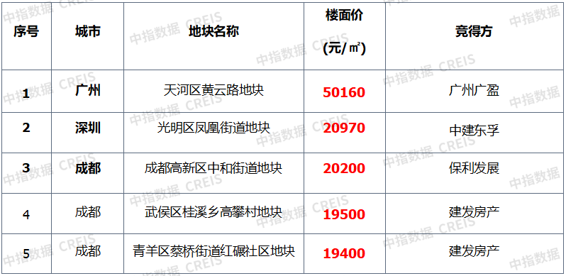 ▍宅地单价TOP5:榜单均价走高,成都一城占据榜单三席