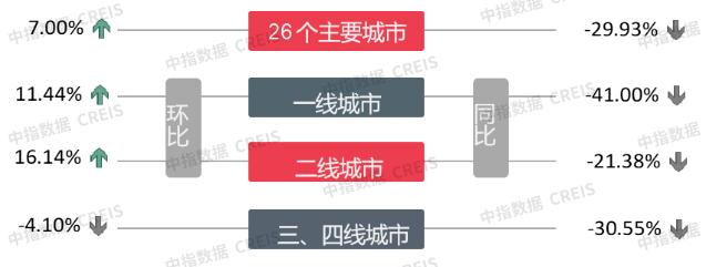 ▍交易:整体环比上升7%,一二线城市环比均上涨
